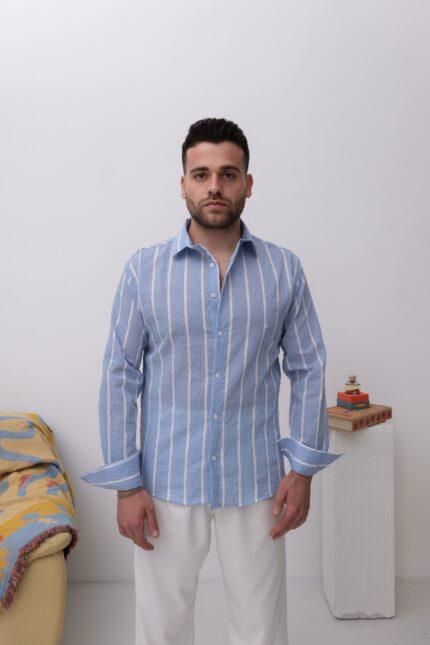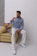 Zarif çizgili deseniyle dikkat çeken bu gömlek, %100 doğal Tansel kumaştan üretilmiştir.