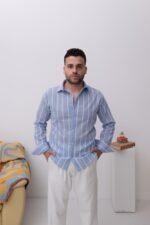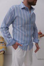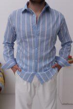 Mavi Çizgili Tansel Kumaş Gömlek