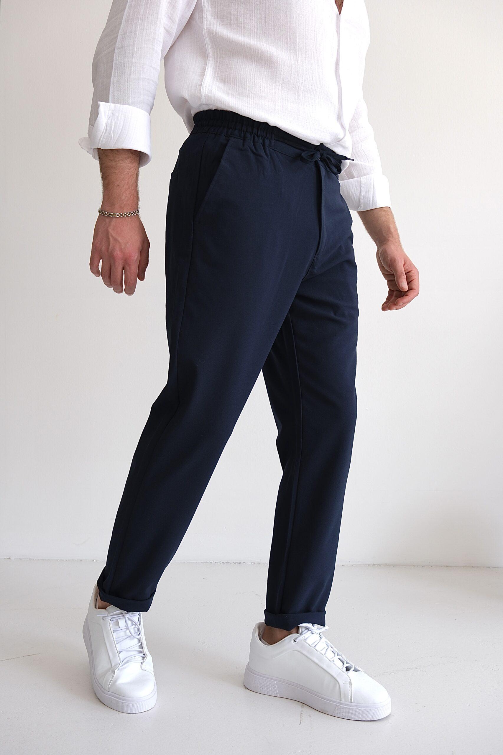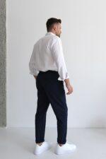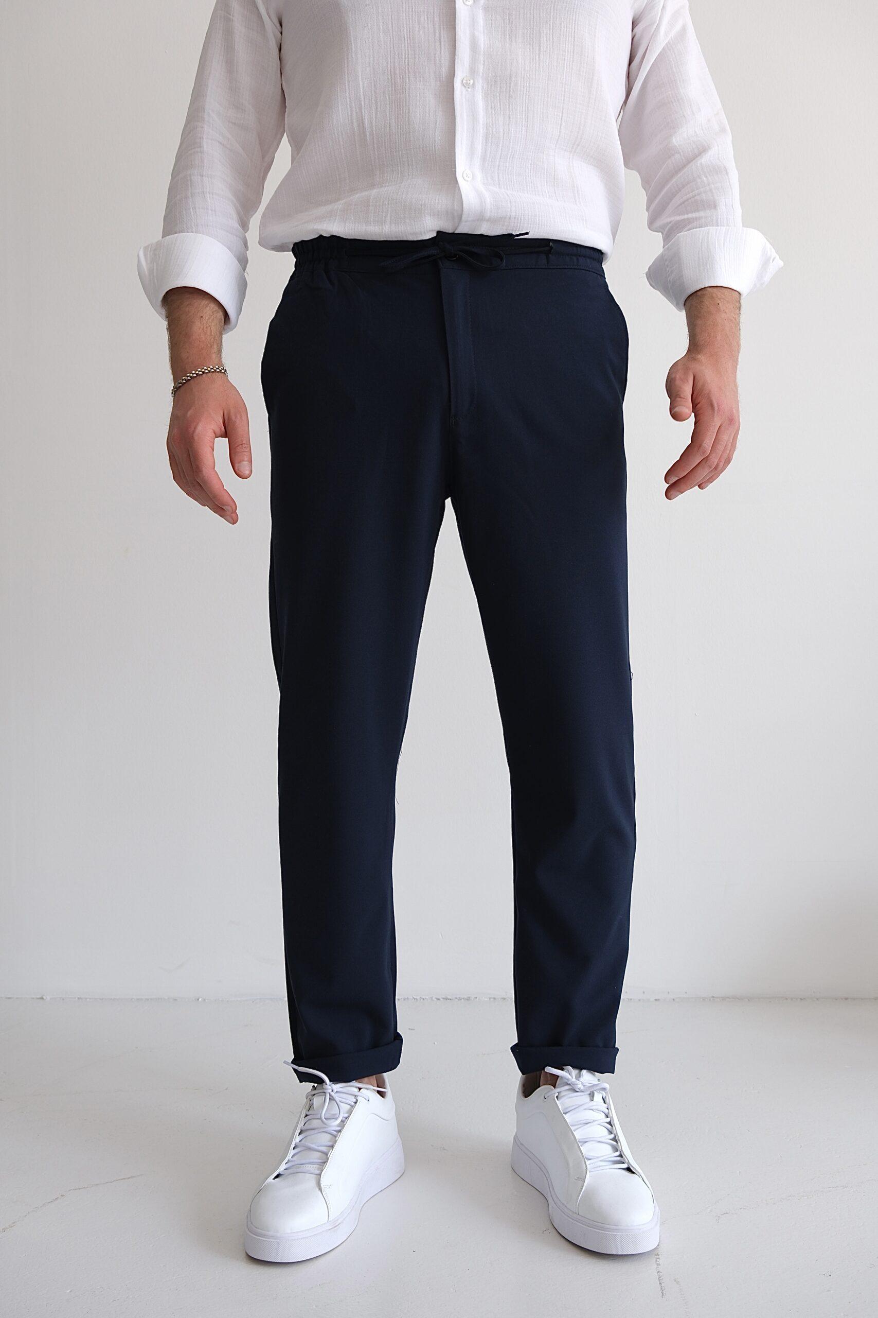 “Rahatlığı ve şıklığı bir arada sunan lacivert jogger pantolon, bez ayağı kumaşıyla hafif ve nefes alabilir bir yapıdadır.